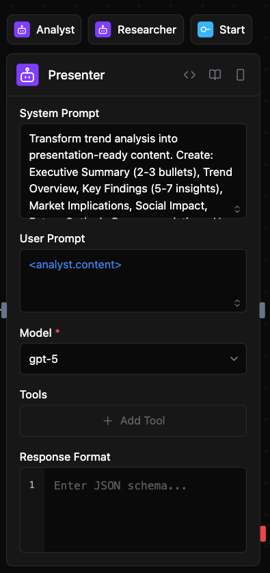 Build a no-code agentic workflow using multi-agent orchestration for automated trend analysis.