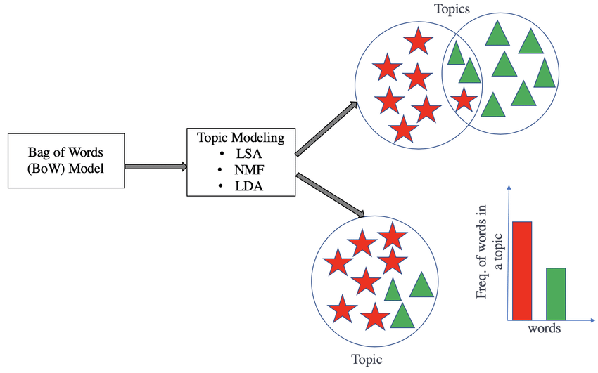 NLP can be used to identify trends and emerging issues through topic modeling. Here we employ techniques to find clusters of related words and phrases to identify trends. Techniques for topic modeling may employ clustering strategies, or use the popular Gensim library.